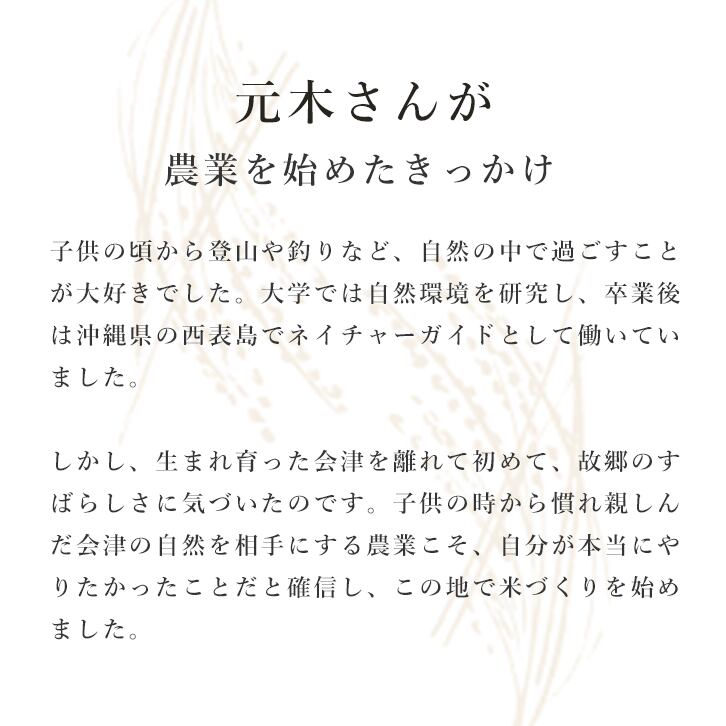 清らかな雪解け水と昼夜の寒暖差が大きい気候、肥沃な土壌がそろう会津は、お米づくりに最適な土地として知られています。