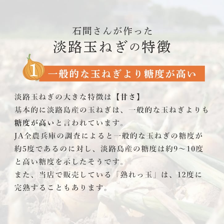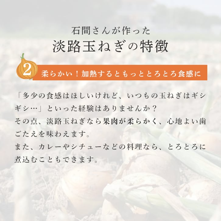 ・土作りには有機100%の肥料と淡路牛の完熟堆肥を使用し、淡路島の土の力を活かす玉ねぎ作りをしています